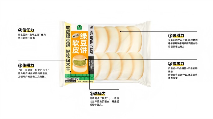 好賣的品牌都是五力高手, 挖掘五力,再設(shè)計(jì)包裝,賣貨就是自然的結(jié)果。 四喜賣貨包裝,掌握一套有效挖掘五力的方法。已經(jīng)服務(wù):金鶴大米,老街口瓜子,摩爾農(nóng)莊核桃奶,御石榴果汁飲品,黃天鵝可生食雞蛋,陜果妙地鮮高品質(zhì)蘋果,野森林大地陽光黑木耳,大師小點(diǎn)蛋撻,光明,今麥郎,書亦燒仙草等品牌。我們專注賣貨包裝策劃,提供從品牌定位分析到包裝落地生產(chǎn)的全流程服務(wù)。